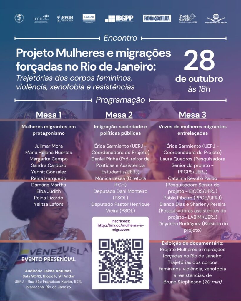 - Tema: Mulheres e Migrações Forçadas no Rio de Janeiro: Trajetórias dos Corpos Femininos, Violência, Xenofobia e Resistências